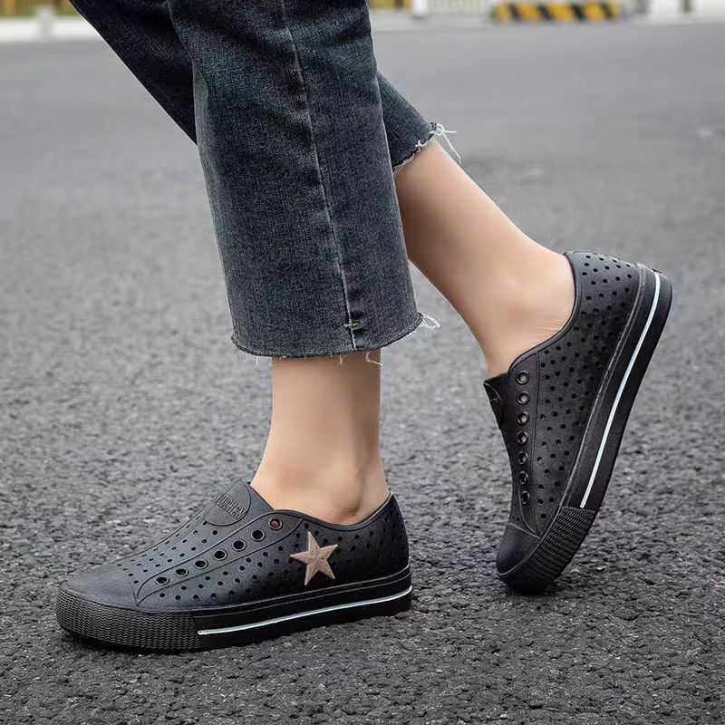 • 合利鲨夏季低帮男士雨鞋低筒时尚情侣洞洞鞋镂空浅口男女休闲单鞋