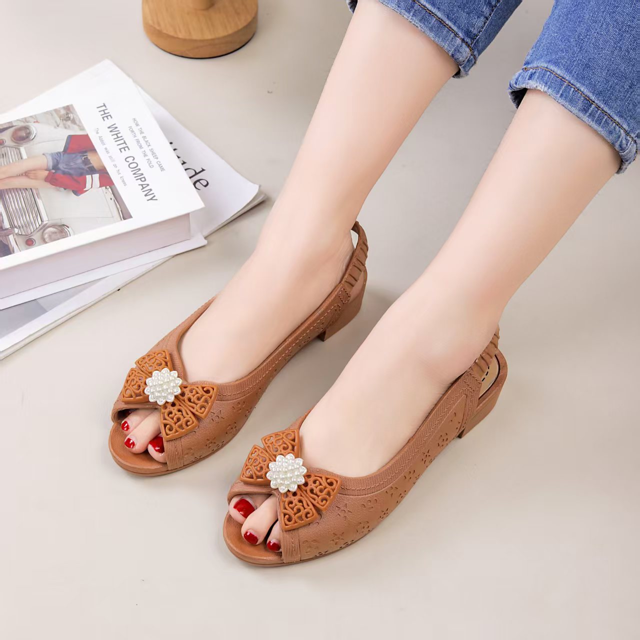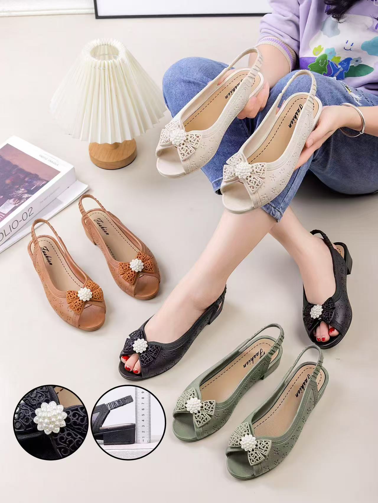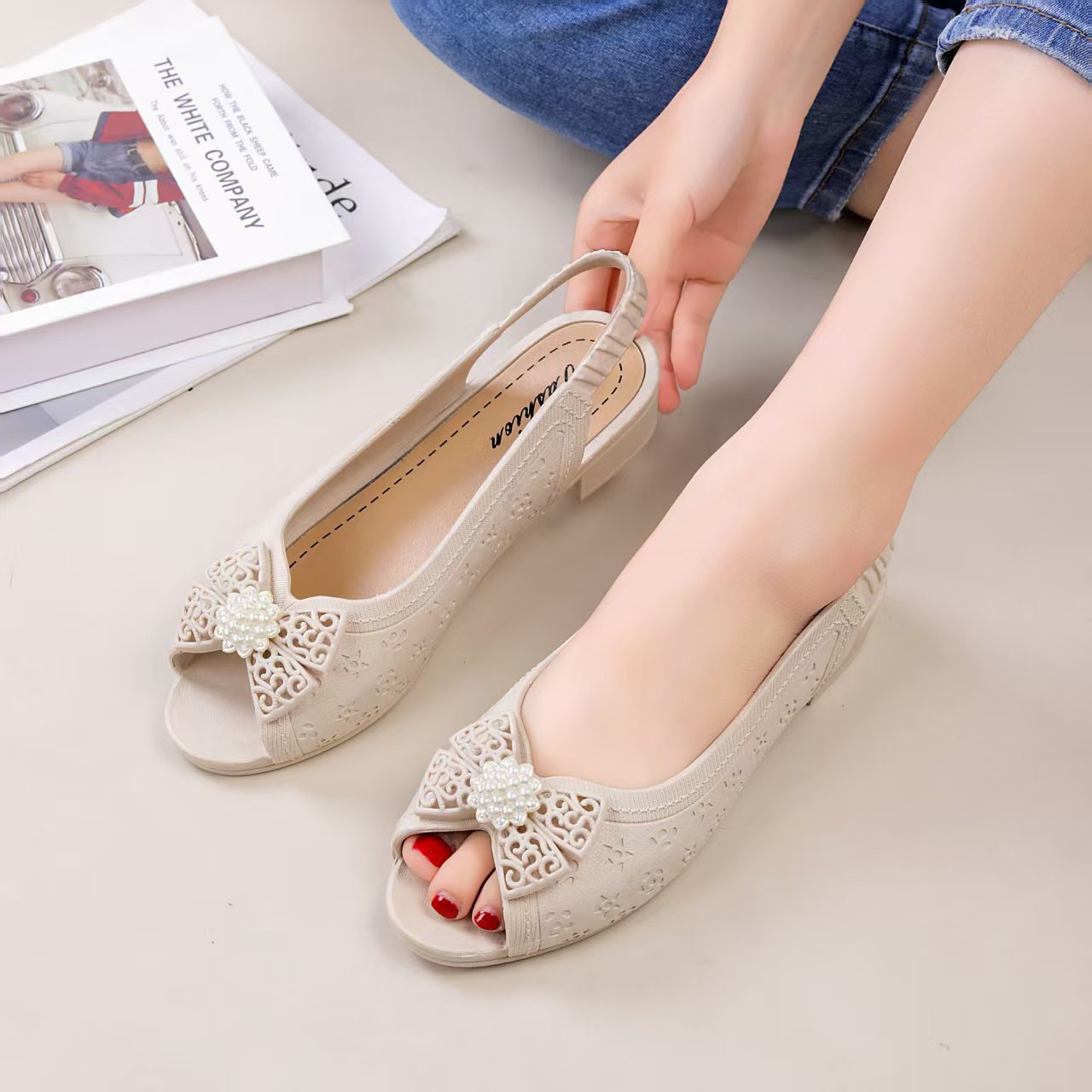 • 合利鲨时尚女士外穿单鞋夏季休闲低跟凉鞋新款纯色沙滩鱼嘴女凉鞋