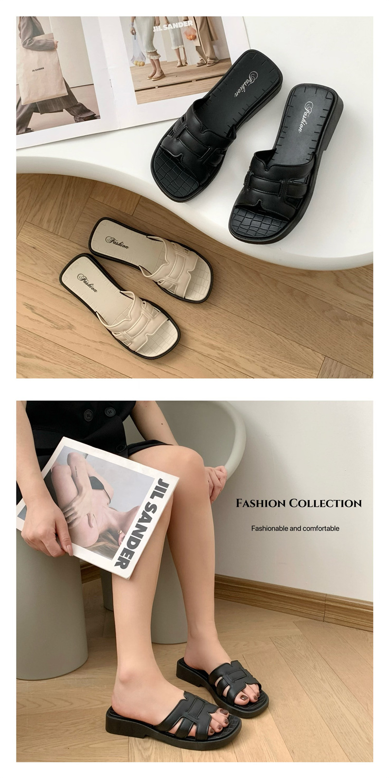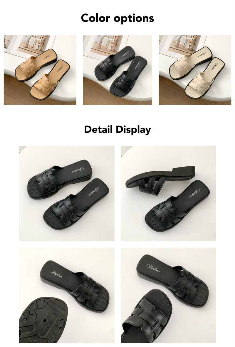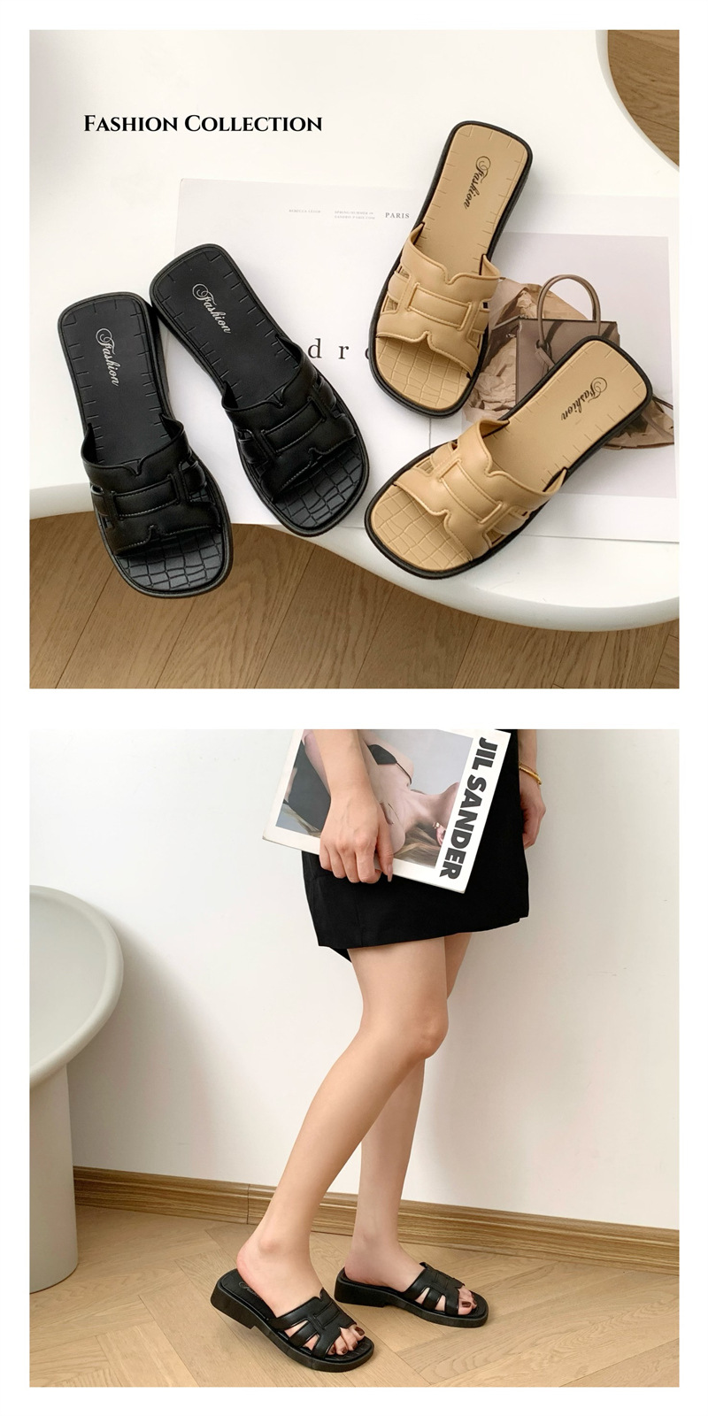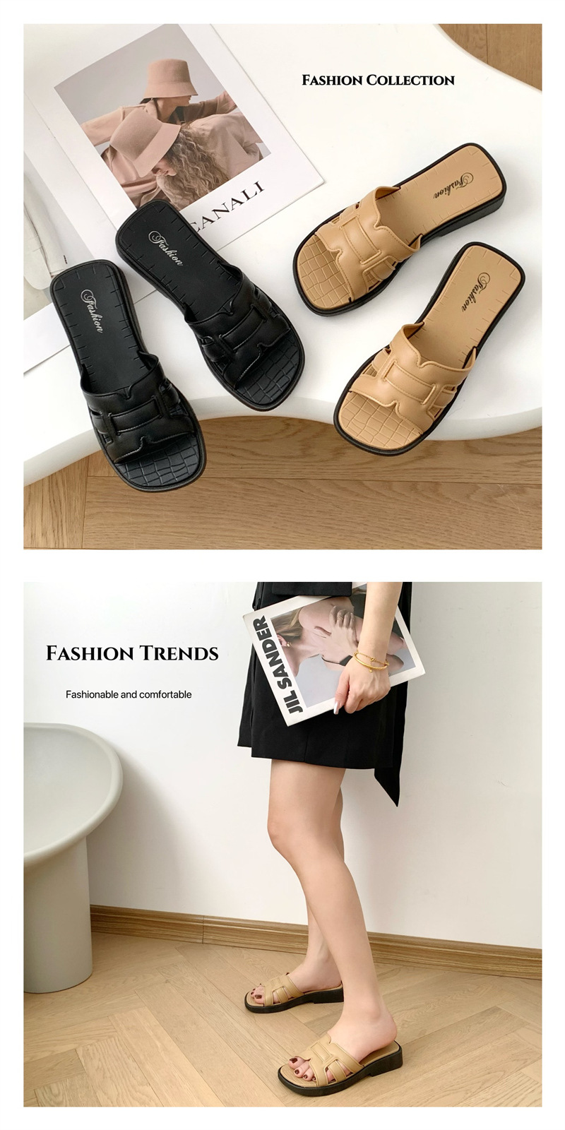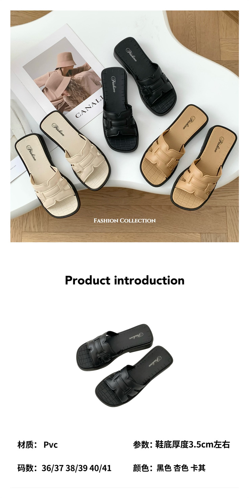 • 合利鲨女士夏季外穿一字拖平底家居休闲凉拖鞋粗跟时尚沙滩鞋拖鞋