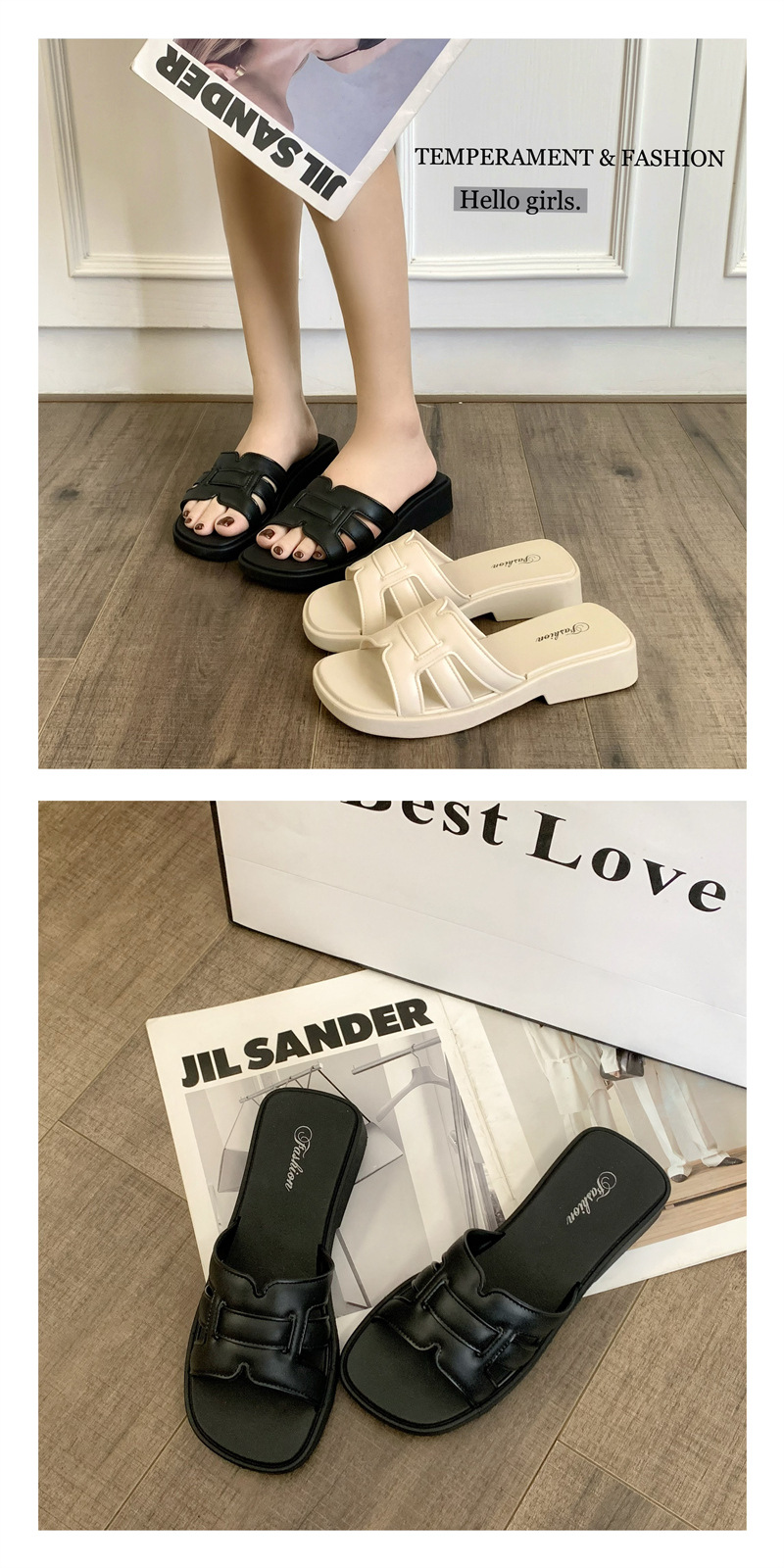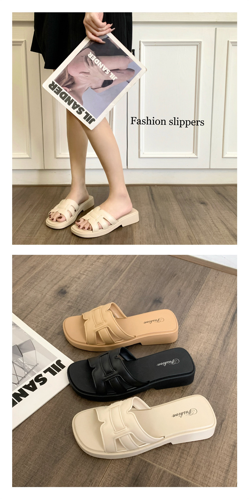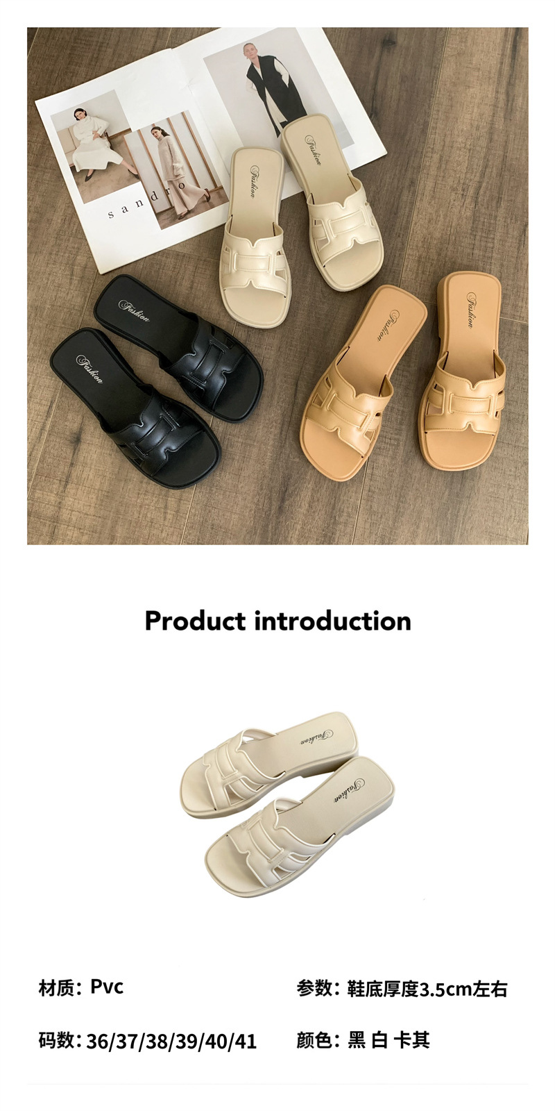 • 合利鲨夏季外穿凉拖鞋新款女士家居休闲一字拖时尚纯色沙滩鞋拖鞋