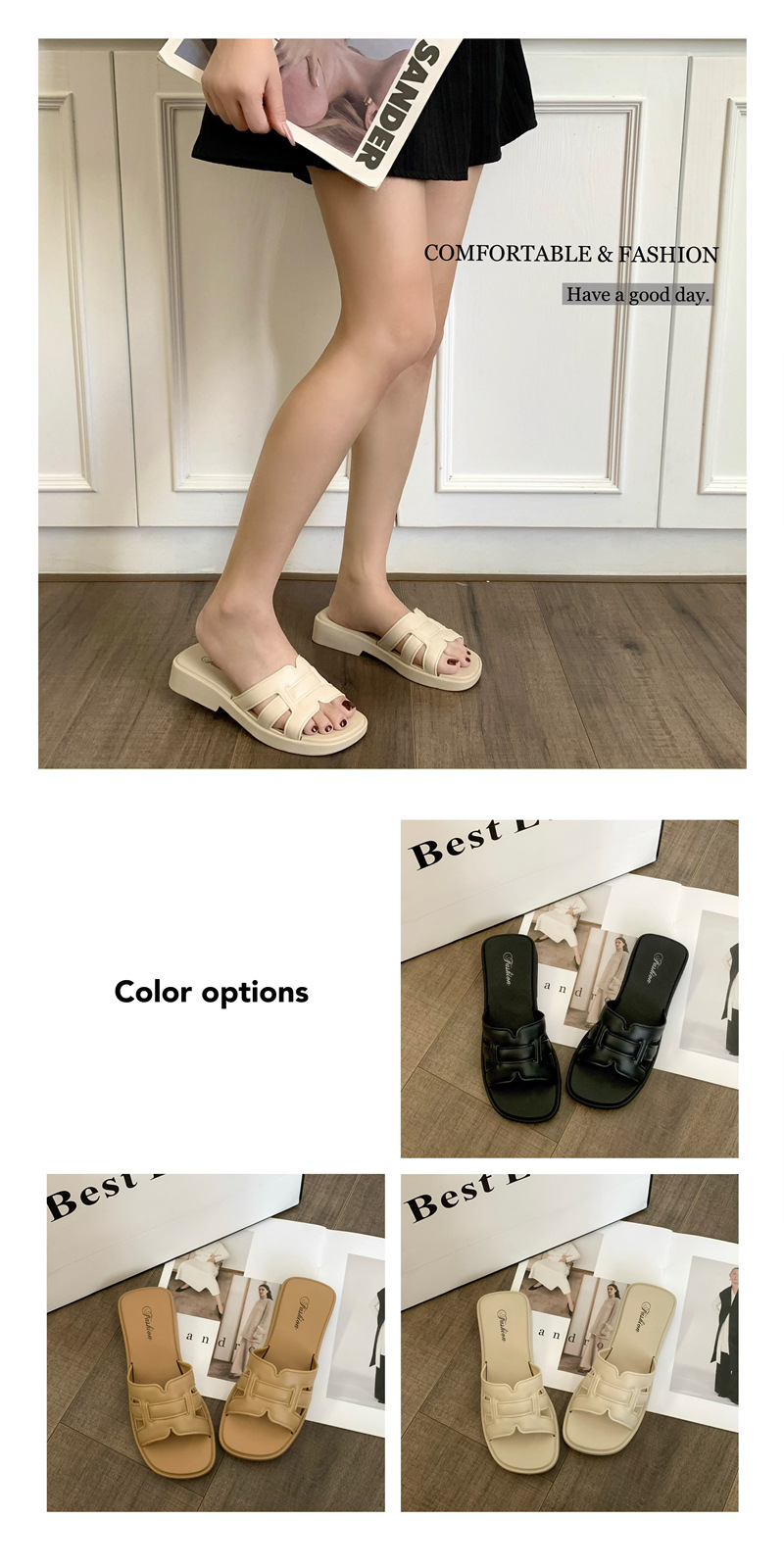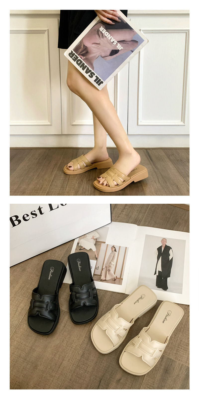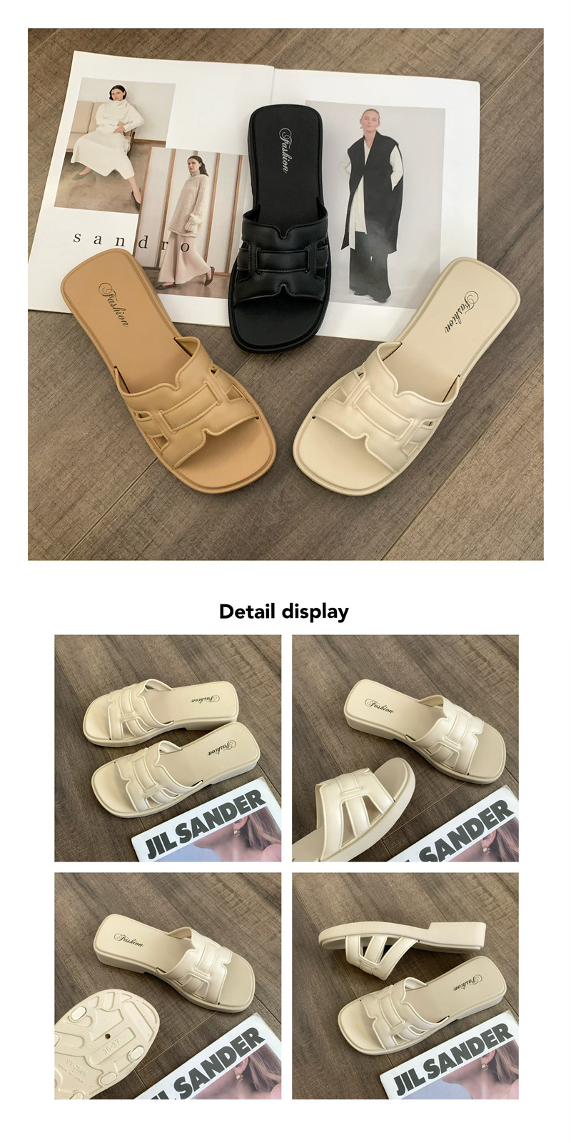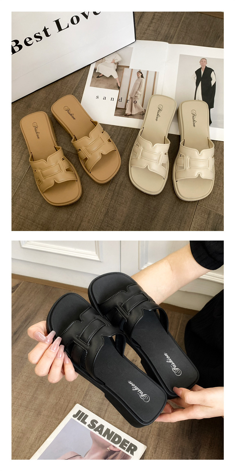 • 合利鲨夏季外穿凉拖鞋新款女士家居休闲一字拖时尚纯色沙滩鞋拖鞋