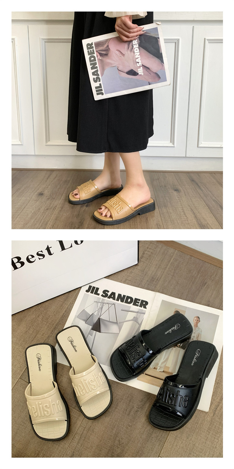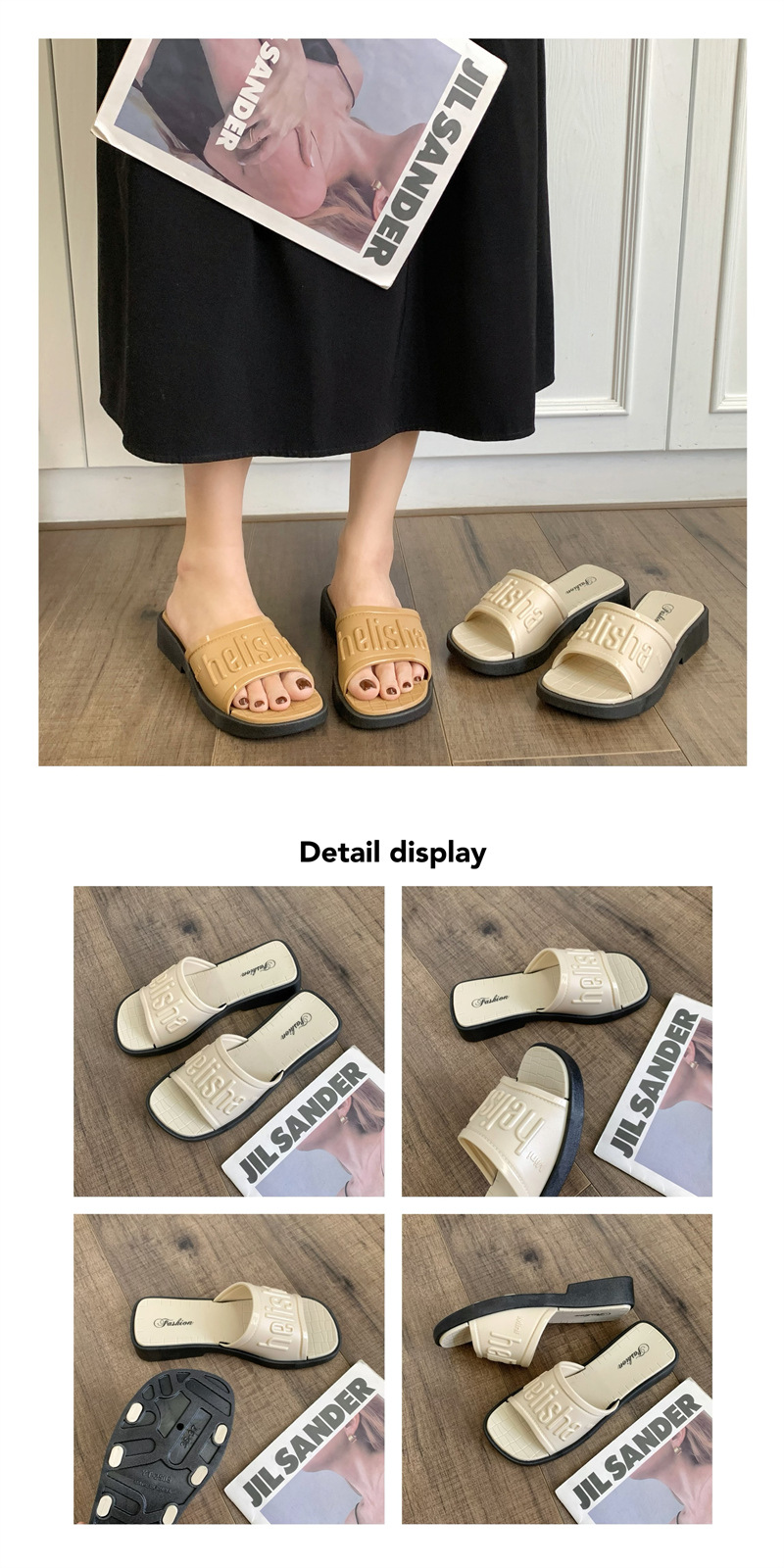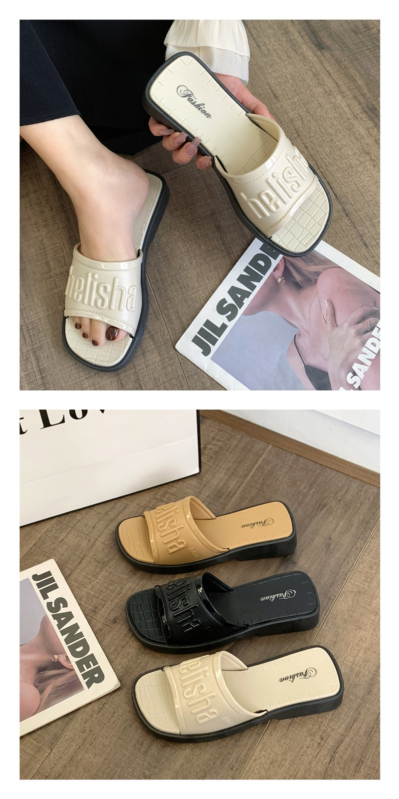 本店所有商品都是实物实拍,塑料鞋如遇到有压扁的情况,可用吹风机吹热,就能恢复原形,产品弹性很强,请各位放心