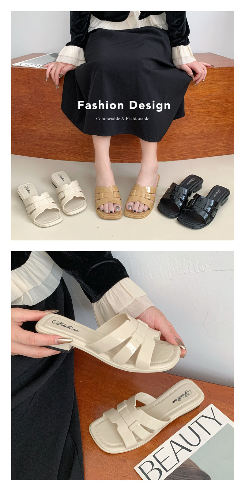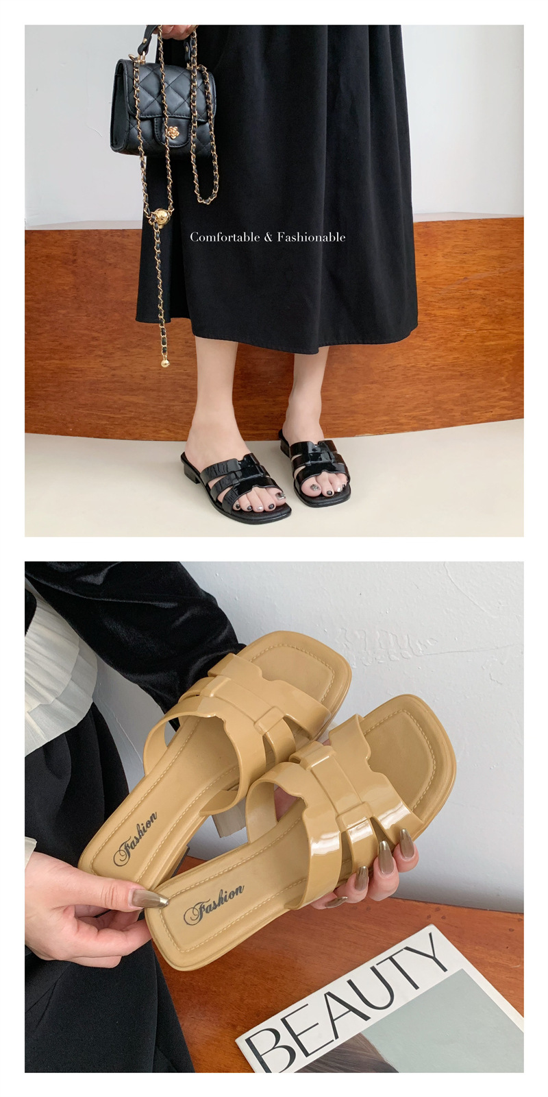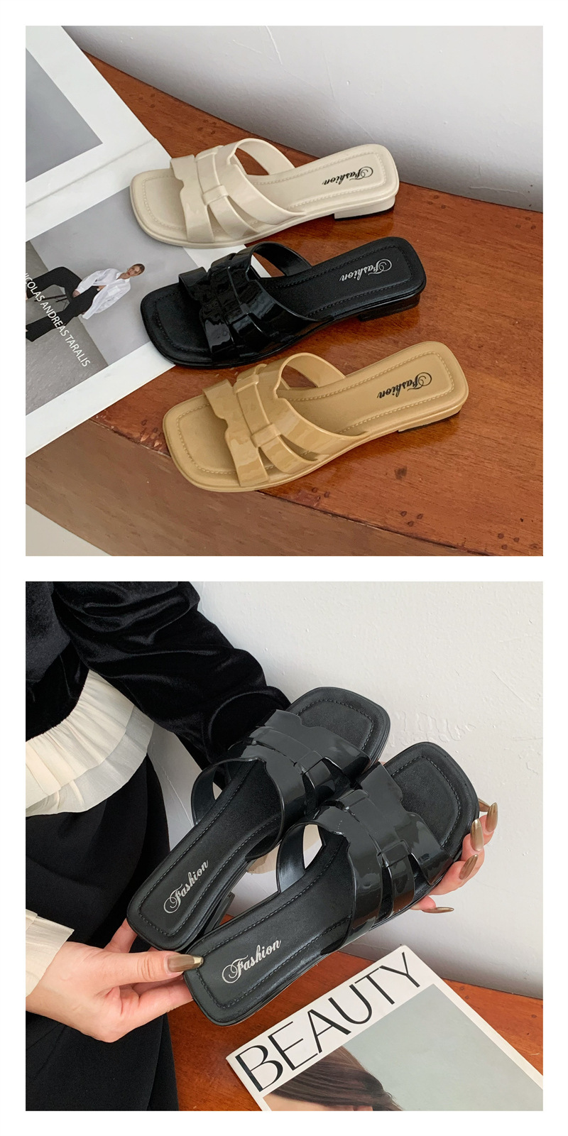 本店所有商品都是实物实拍,塑料鞋如遇到有压扁的情况,可用吹风机吹热,就能恢复原形,产品弹性很强,请各位放心