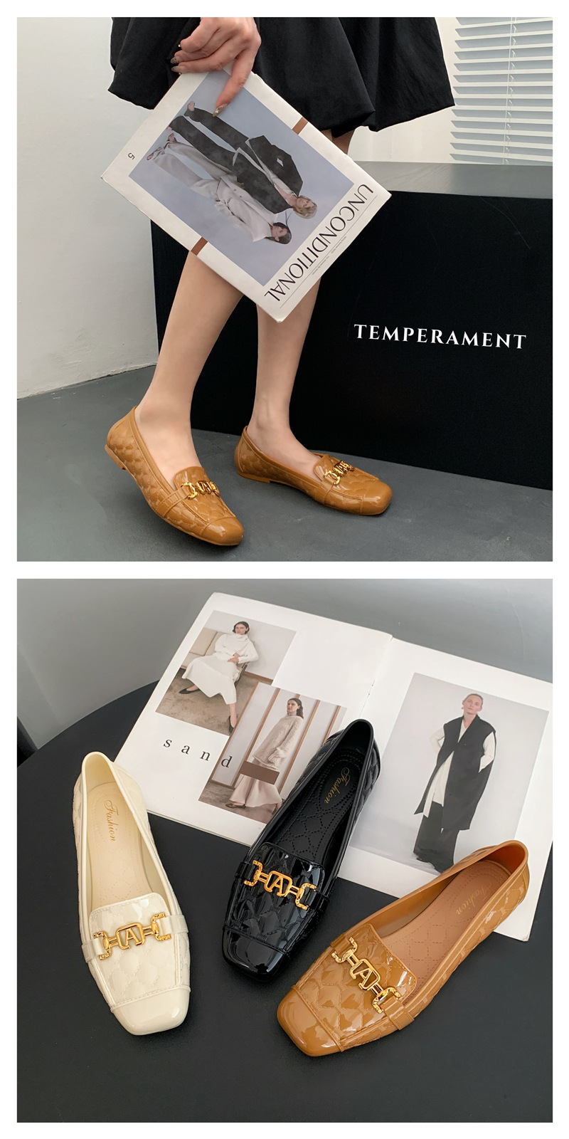 本店所有商品都是实物实拍,塑料鞋如遇到有压扁的情况,可用吹风机吹热,就能恢复原形,产品弹性很强,请各位放心