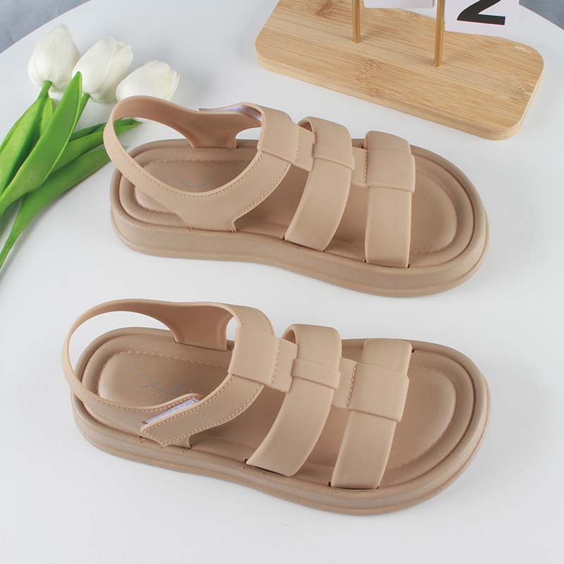 • 合利鲨时尚女夏季外穿凉鞋镂空纯色平底沙滩凉鞋休闲魔术贴女鞋