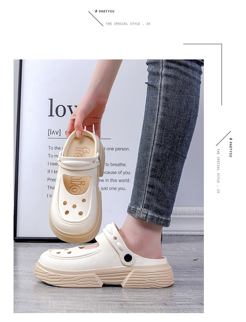 • 合利鲨新款厚底女士凉拖鞋时尚拼色包头拖夏季外穿休闲沙滩女凉鞋