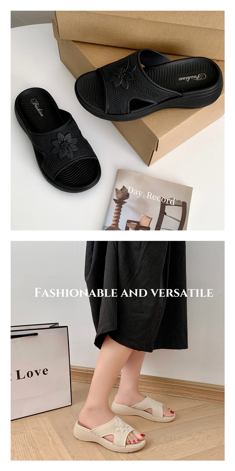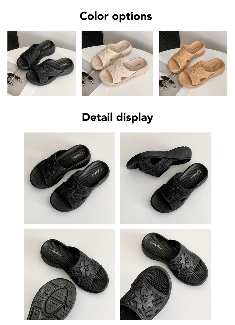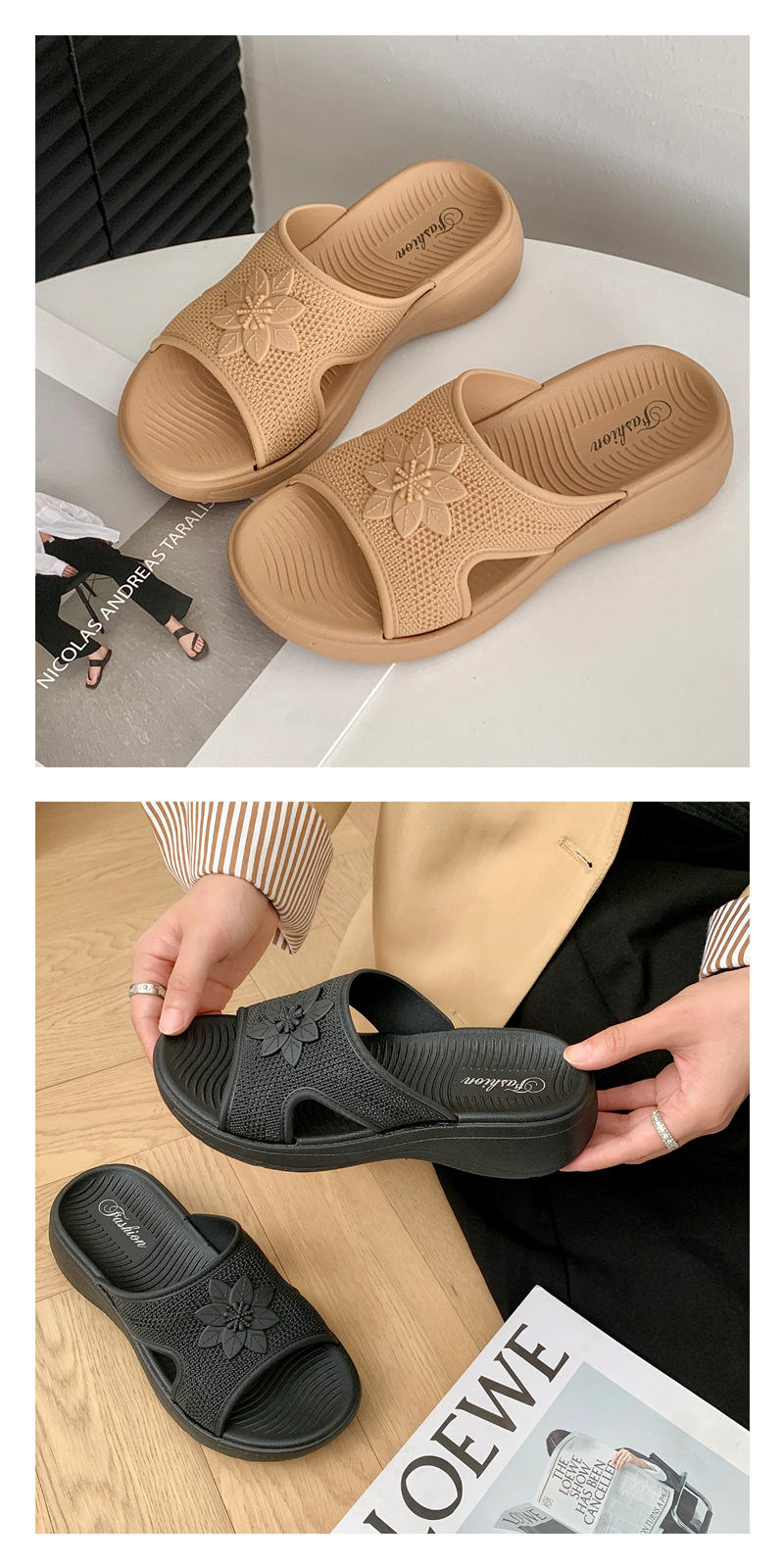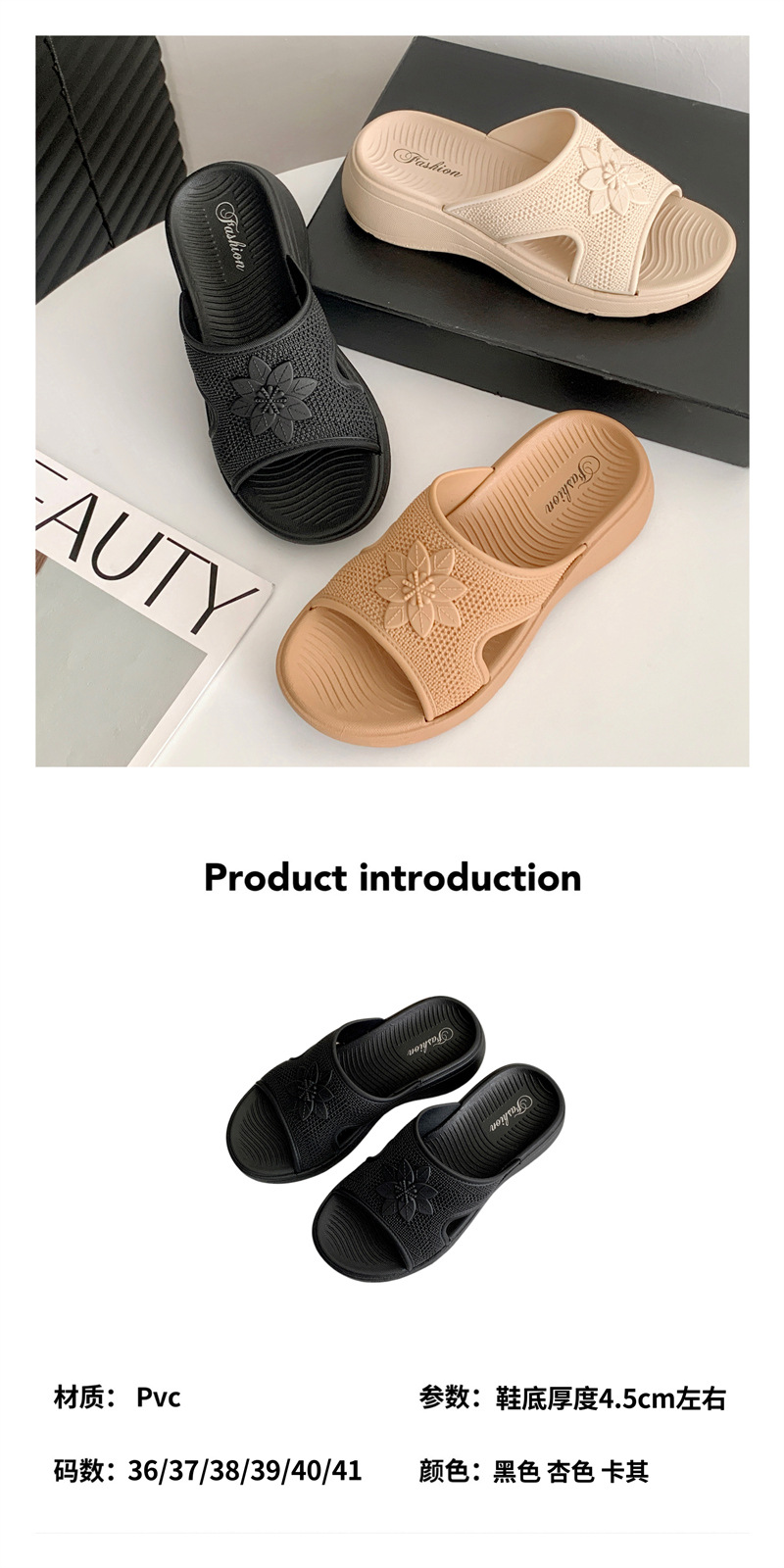 • 合利鲨新款厚底女外穿拖鞋夏季时尚纯色花朵一字拖休闲沙滩女凉拖